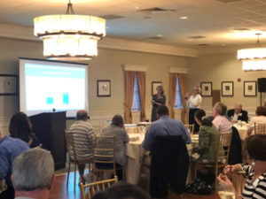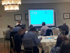 Interested business owners listening to Jennifer Eubanks of Eubanks Accounting & Advisory explain the new tax laws.